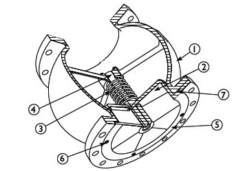 靜音式止回閥主要由閥體、閥座、導(dǎo)流體、閥瓣、軸承及彈簧等主要零件組成,內(nèi)部流道采用流線型設(shè)計(jì),壓力損失極小。閥瓣啟閉行程很短,停泵時(shí)可快速關(guān)閉,防止巨大的水錘聲,具有靜音關(guān)閉的特點(diǎn)。